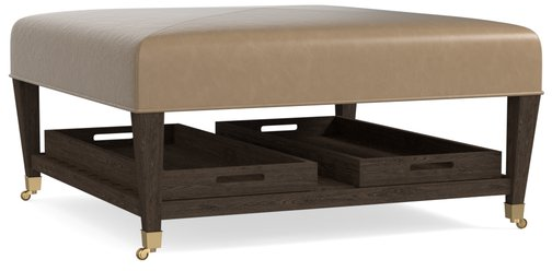 Need an extra seat or a serving tray? Your cocktail table can go anywhere, do anything with its graceful casters and the included tray. Square or rectangular, this ottoman is customizable to fit any room, with leather or fabric options, and options like nail head trim (available in stores) and tufting. The possibilities are endless.Read More