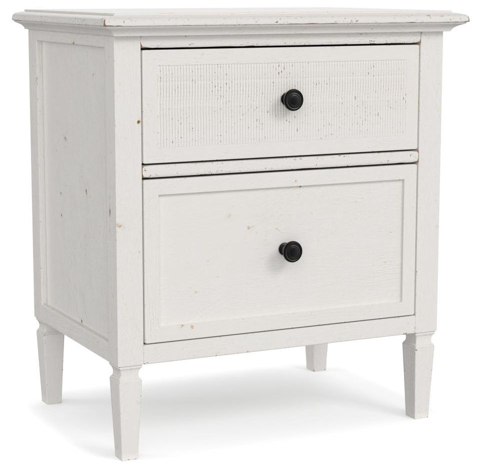 The perfect bedside storage! This Sea Salt finish, 2-drawer nightstand has a textured, ribbed top drawer, oil-rubbed bronze pull knobs plus soft, self-closing drawer guides. This table is easily adaptable to use beside your bed, as a hall table or in a living room.Read More
