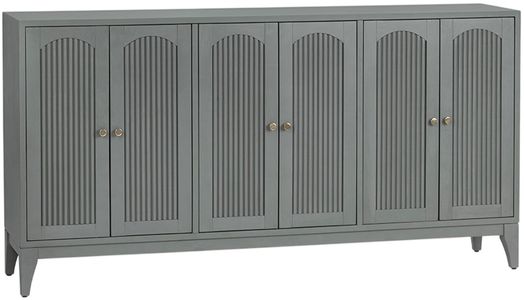 Breezy texture meets generous storage. Arched doors wrapped in hand-woven cane lighten a drift-gray frame, giving this 74-inch console relaxed coastal style. Adjustable shelves, rear cord ports and ventilated fronts keep gaming gear, sound bars and board games organized—and cool—while antique-brass knobs add a hint of polish.Read More