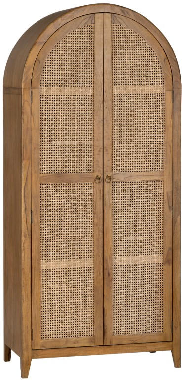 Make a bold yet timeless statement with this arched accent cabinet. Crafted with a natural wood finish and intricately woven cane door panels, it brings warmth and texture to any space. The tall, arched silhouette offers visual interest, while the spacious interior with adjustable shelves ensures versatile storage.Read More