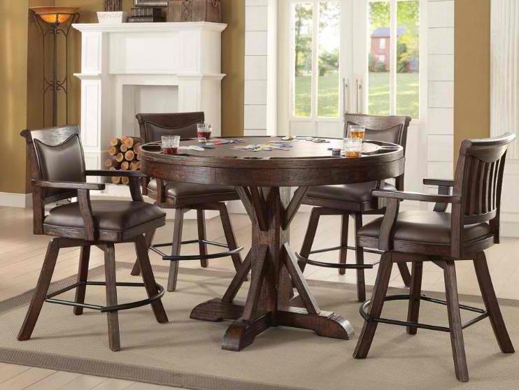 Elevate your dining space with this Round Counter Game Table from Gettysburg Collection. Shown in a dark brown wood finish. Make a bold statement by incorporating this stunning furniture into your home.Read More