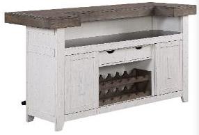Elevate your dining space with this Bar Cabinet from La Sierra Collection. Shown in a heavily distressed white bar and wine china with a grayish-brown washed top. Make a bold statement by incorporating this stunning furniture into your home.Read More