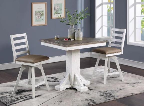 Elevate your dining space with this Pub Table from La Sierra Collection. Shown in a heavily distressed white finish and grayish-brown washed top. Make a bold statement by incorporating this stunning furniture into your home.Read More
