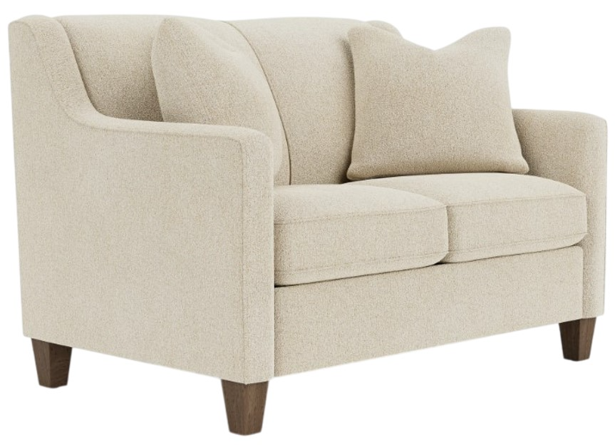 The Holly loveseat is simply elegant. With soft upholstery and exposed wood feet, this is the perfect piece for cuddlers and solo relaxers alike.