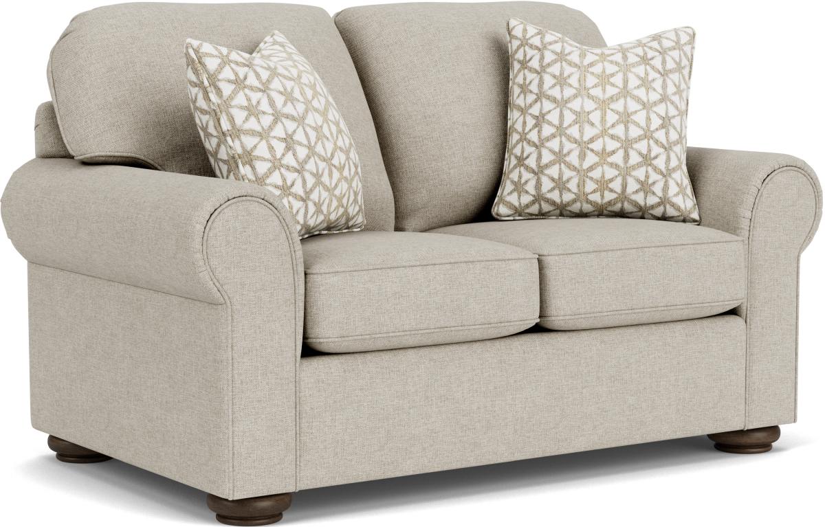 Invite everyone to stay a while with the Preston collection from Flexsteel®. The large rolled arms, bun feet, smooth edges, and welt cording gives your home an elegant touch. Ease back on the plush cushioning and hang out with your guests for hours on end in absolute comfort. With the Preston collection, enjoy traditional style and cozy relaxation for years to come.