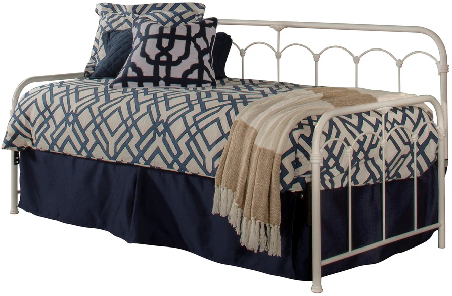 Antique-inspired and airy, Hillsdale Furniture's Jocelyn daybed is ready to charm your guests with its decorative arches, old fashioned castings and romantic flair. Pastels, ruffles, and fluffy white bedding will be the perfect accent to this whimsical design.Read More