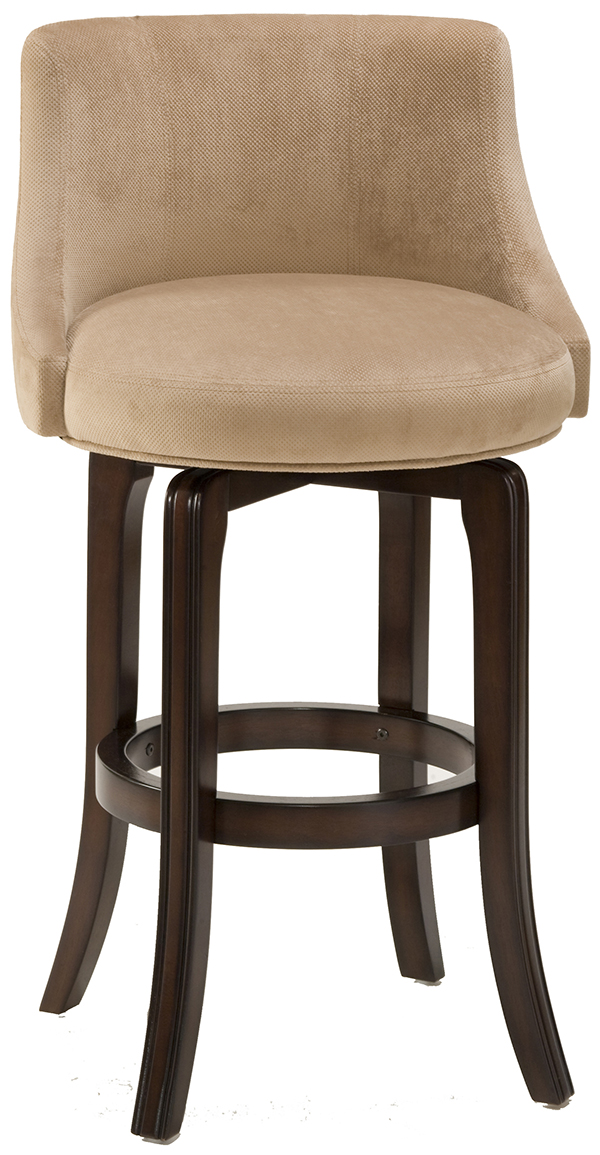 Hillsdale Furniture’s Napa Valley swivel stools are the essence of transitional design with sturdy tapered legs and fully-upholstered barrel style back. Constructed of solid wood with veneer and finished in a rich dark brown cherry, the Napa Valley is available in your choice of 4 fabrics. You can choose from sleek black vinyl, trendy brown leather, a soft textured khaki hued fabric or an antique brown fabric. These handsome stools coordinate with most decors, are available in either bar or counter heights and swivel 360 degrees. A perfect addition to your bar, den or kitchen area.