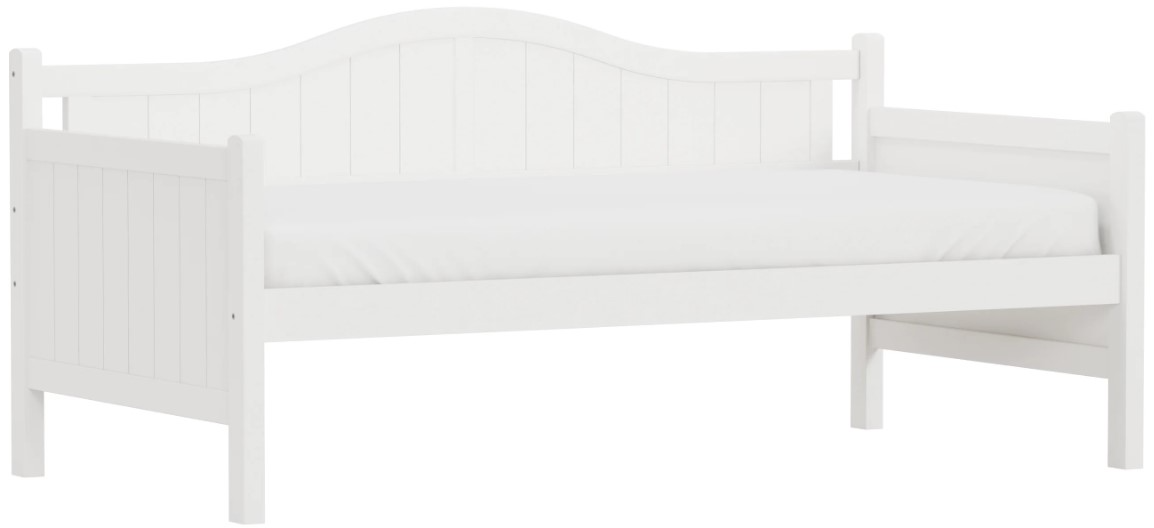 Farmhouse inspired wood twin sized daybed featuring an arched design, and bead board styling