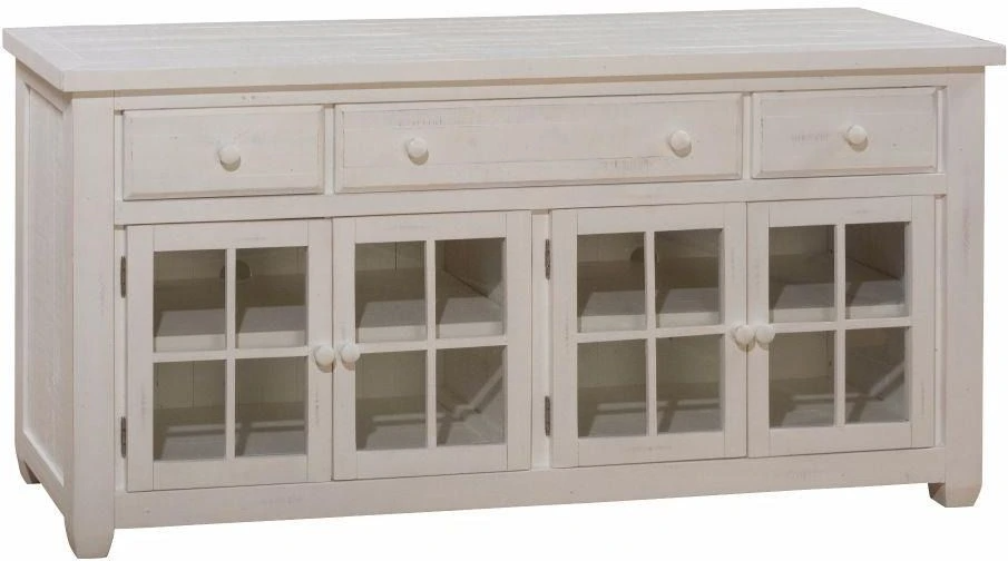 Enhance your entertainment space with Jofran's coastal Madaket Media Console. The posh white finish over reclaimed pine gives it a touch of elegance, while the beefy silhouettes and solid construction offer a robust look. The rustic finish adds warmth and charm to your media room, creating a cozy and inviting atmosphere.Read More
