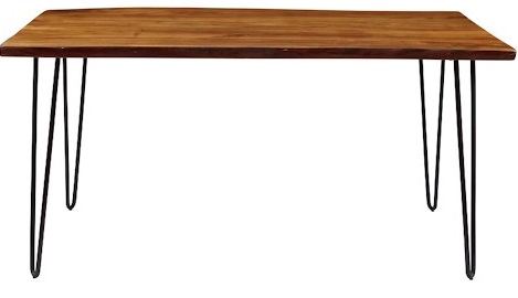 There's nothing we don't love about this collection. From the rich finish to the live edge curves to the hairpin legs, this group hits all of the right notes for high style in your home. This collection includes occasional and dining pieces. Width range from 33" to 36" due to live edge. Leg Height: 28.5". Distance between legs: 49" and 22.5".Read More