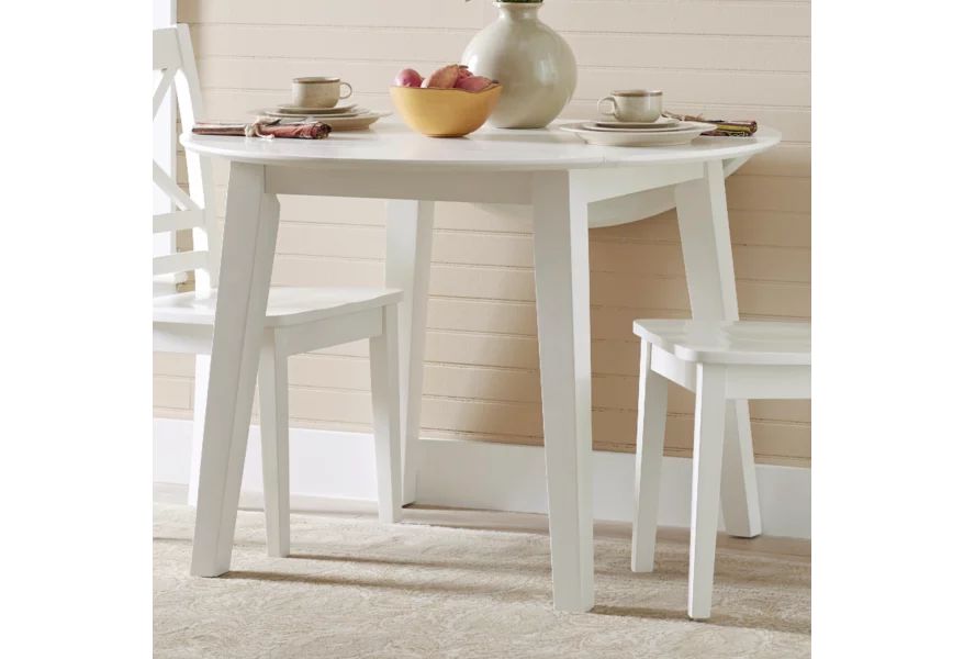 Adding a simple charm to dining room arrangements, this four person table will highlight your home with a look that is relaxed but not under-appreciated. The piece is made of solid rubberwood finished in a rich and beautiful tone that allows elements of the natural wood grain to show. The legs are straight and simple and feature a slight outward slant which not only complements the table with a hint of style but also creates a little extra leg room. The table top also has a drop-leaf construction allowing it to shrink down a bit when you need a little extra space. Pair this table with any of the matching chairs in this collection to customize the look of your kitchen or dining space.