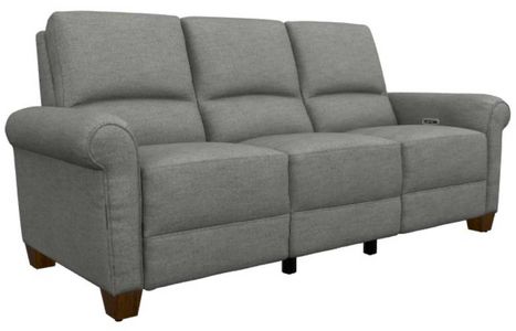 The Clybourn power reclining sofa with headrest has classic charm with sophisticated cigar arms, chic welt trim and wood legs. Just use the inner armrest power controls to adjust the backs, legrests and headrests for luxurious zero-gravity support.Read More