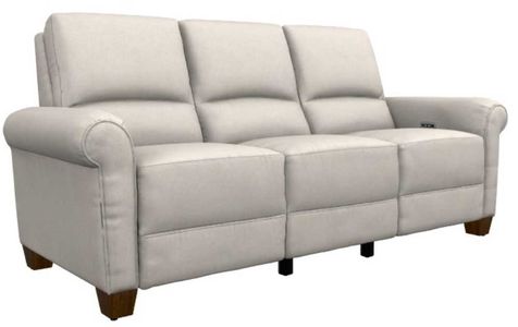 The Clybourn power reclining sofa with headrest has classic charm with sophisticated cigar arms, chic welt trim and wood legs. Just use the inner armrest power controls to adjust the backs, legrests and headrests for luxurious zero-gravity support.Read More
