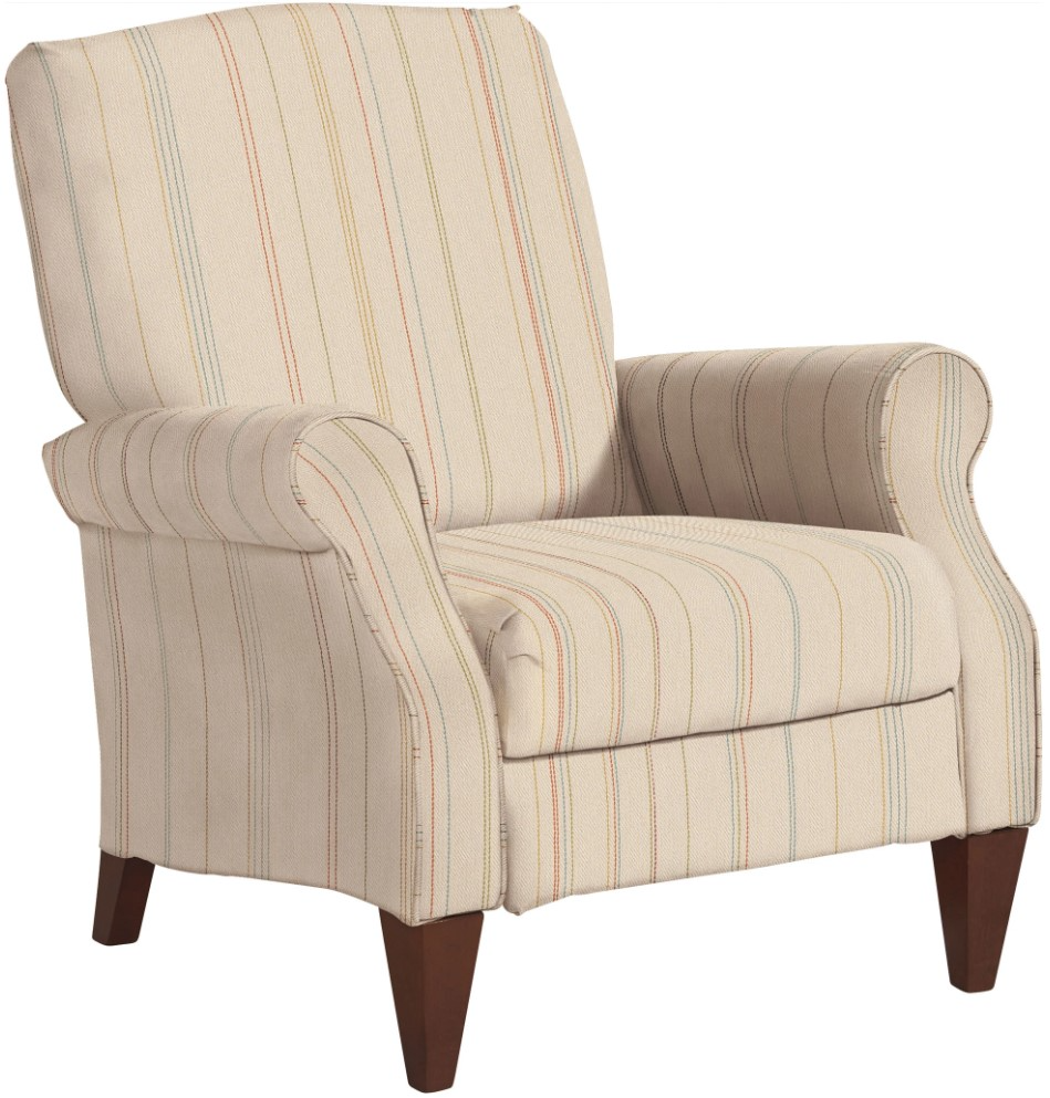 The simple design of the Charlotte High Leg Reclining Chair makes it a beautiful complement to any room. It features elegantly tapered wood legs and sophisticated arms that are both rolled and flared. A solid foam back gives Charlotte a clean and structured appearance, while providing support for your back.Read More