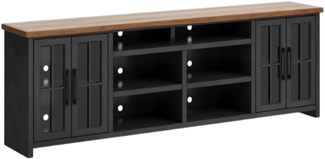 The Essex 96" TV Stand combines coastal cottage charm with a modern farmhouse flair, offering a stylish and functional addition to any living space. It supports TVs up to 100" and provides ample storage for all your media essentials. The eye-catching Black and Whiskey finish enhances the overall appeal.Read More