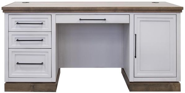 The Nora executive desk boasts clean lines and crisp, refreshing modern styling. Beautifully crafted from poplar solids, knotty alder solids and okume veneers, this computer desk is available in multiple two-tone finishes with black hardware. Ideal for your home office or any creative space, this desk includes one drop-down keyboard drawer.Read More