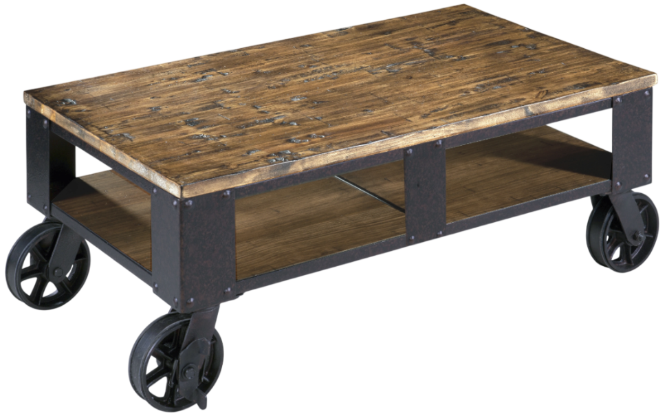 Magnussen Home® Pinebrook Distressed Natural Pine Rectangular Cocktail Table with Black Metal Casters