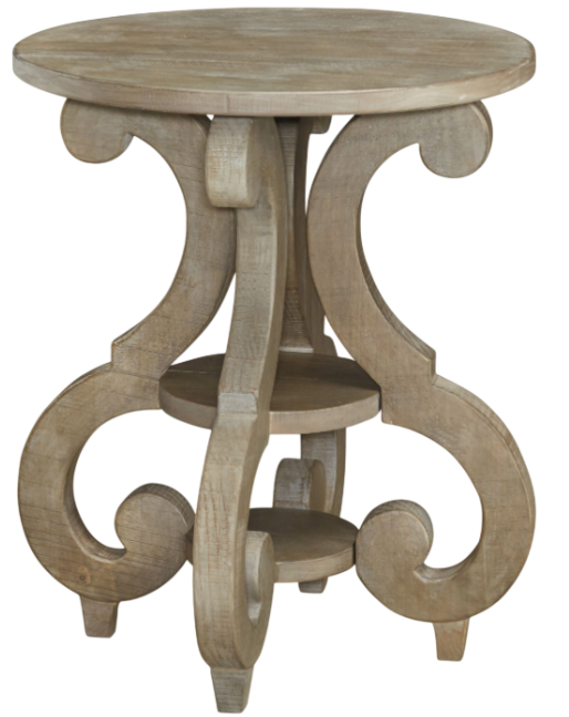 Bring Old World charm home with the Tinley Park table collection. Gracious S-curved carved bases support overlaid solid pine tops finished in vintage inspired Dovetail gray on pine. Weathered Bronze metal stretchers and hardware create the perfect accent to set the mood for stunning European influenced elegance with rectangular end and cocktail tables while the two drawer sofa table and round end table are exceptionally beautiful.Read More