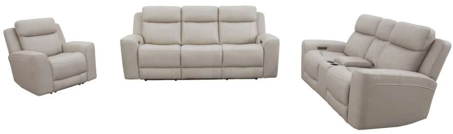 Calgary is a chic and fashionable sofa group featuring power recline and headrest controls and allows you to adjust your seating position easily. The over-padded headrests provide extra comfort, while the wide, sloped arms add to the recliner's stylish design.Read More
